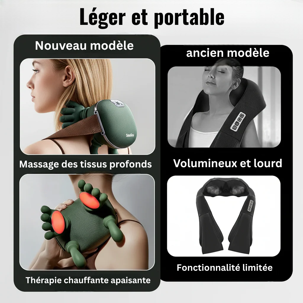 La plupart des masseurs se contentent de vibrer et déçoivent. imite de vraies mains grâce à son système bionique à cinq doigts, ciblant précisément les zones où la tension s’accumule pour éliminer la raideur en quelques minutes.