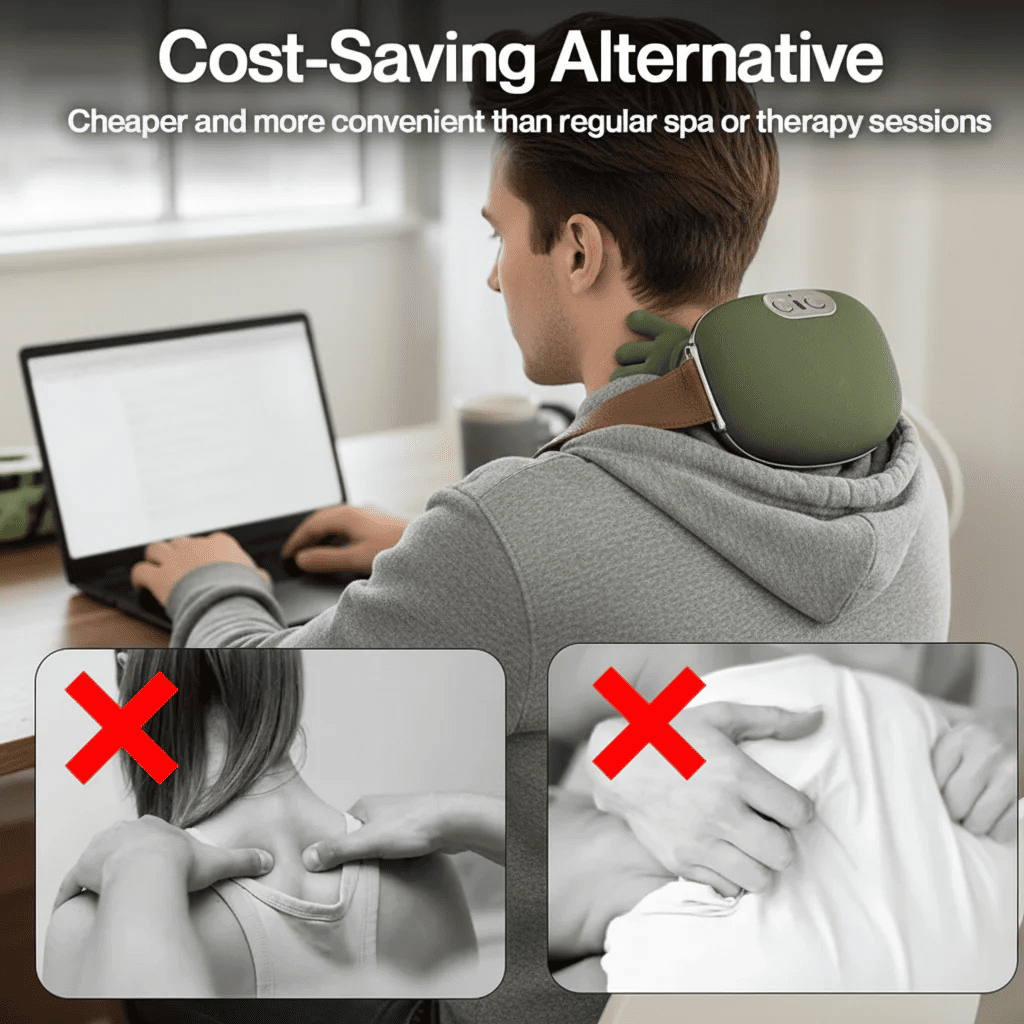 Un seul appareil pour un soulagement complet du corps. Utilisez-le avec le Smart Massager non seulement sur le cou et les épaules, mais aussi sur le dos, la taille, les cuisses ou les mollets pour détendre les tensions partout. Parfait pour les travailleurs de bureau, les conducteurs et les personnes au foyer, il élimine raideur et fatigue, offrant une solution complète pour le corps en un seul masseur compact.